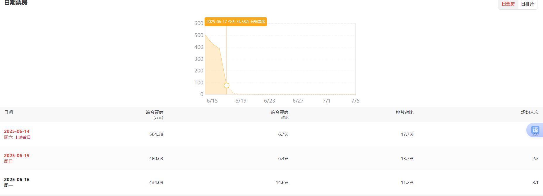 排片占比17.7%,票房占比6.7%,上座率稳居垫底宝座。