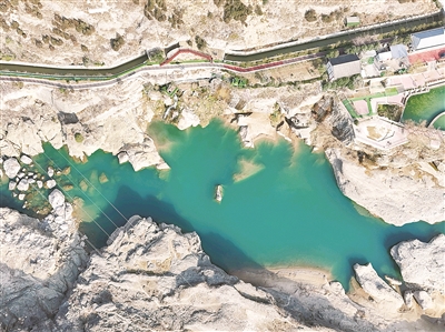 12月25日,礼泉县烟霞镇湾里村,碧绿的水潭嵌入于自然峡谷之中,陡壁乱石与如镜水面互相烘托,蓝绿色的潭水与嶙峋岩壁情味横生,被搭客赞为“水上雅丹”,又有东说念主称之为陕西版“乌孙古说念”。