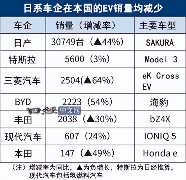 另外还有一个数据,值得宇宙暖和,那便是看成汽车强国的日本,其原土的纯电动汽车品牌销量全线下滑,卖的好的,高速增长的反而是中国汽车品牌。