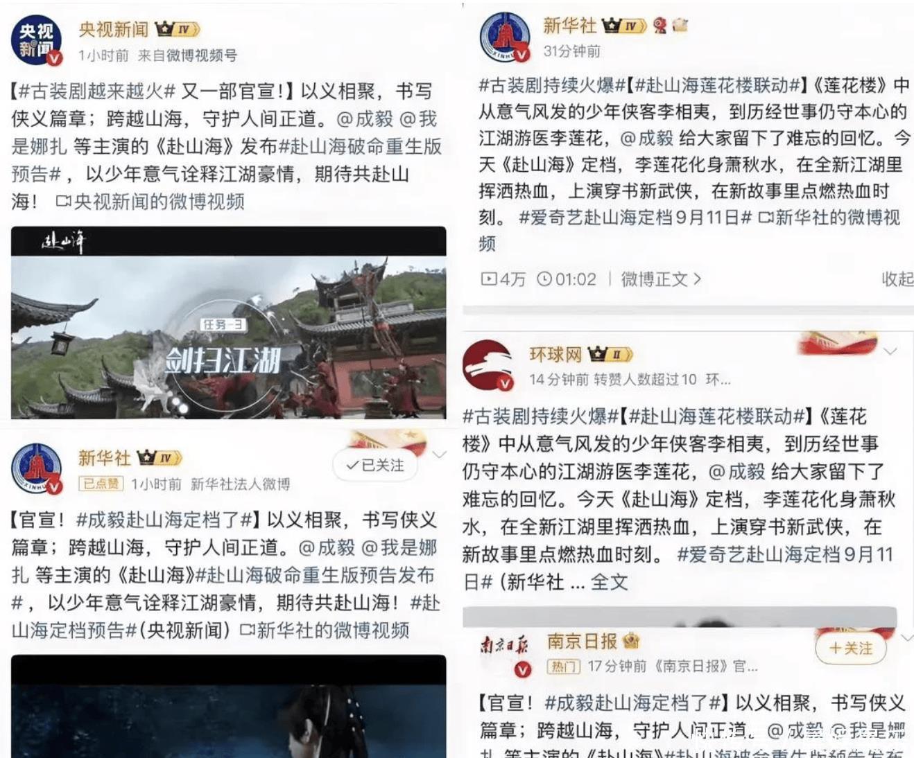 备受期待的古装大剧赴山海终于揭开巧妙面纱,固然错过了暑期档黄金期,却在开学季强势登场。开播前,各大官方媒体账号集体搬动为这部剧逆风招展,宣传阵仗堪称豪华。该剧由古装剧扛把子成毅搭档颜值担当娜扎主演,穿越题材与武侠元素的聚会本应成为最大卖点,播出平台更是豪气地首日放出六集内容,试图一举俘获不雅众芳心。