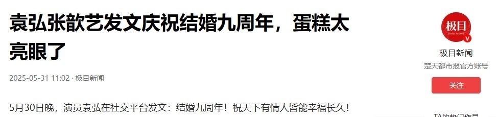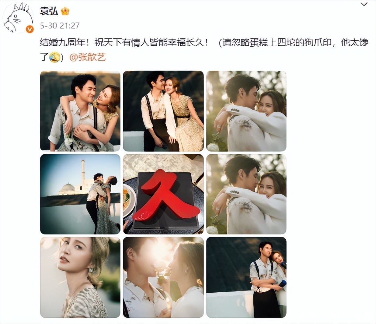 46. 袁弘发文:“九成亲九周年!祝天下多情东说念主王人能幸福永久”。