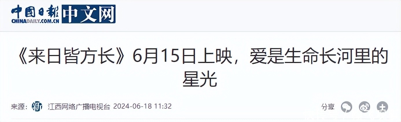 34. 她不仅初次担任电影《改日王人方长》的监制,还主演了实践题材影片《又是充满但愿的一天》。