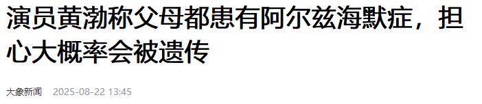 大象新闻|演员黄渤称父母都患有阿尔兹海默症,挂念大略率会被遗传