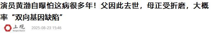 上官新闻|演员黄渤自曝怕这病好多年!父因此死亡,母正受折磨,大略率“双向基因纰谬”